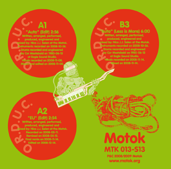 The first O.R.D.U.C. single, titled "Auto", was released Saturday August the 29th on a Lathe Cut 7-inch.